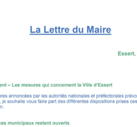 Bonjour à toutes et à tous, Vous trouverez la Lettre du Maire ci-jointe, qui a pour objet le reconfinement et les mesures qui...